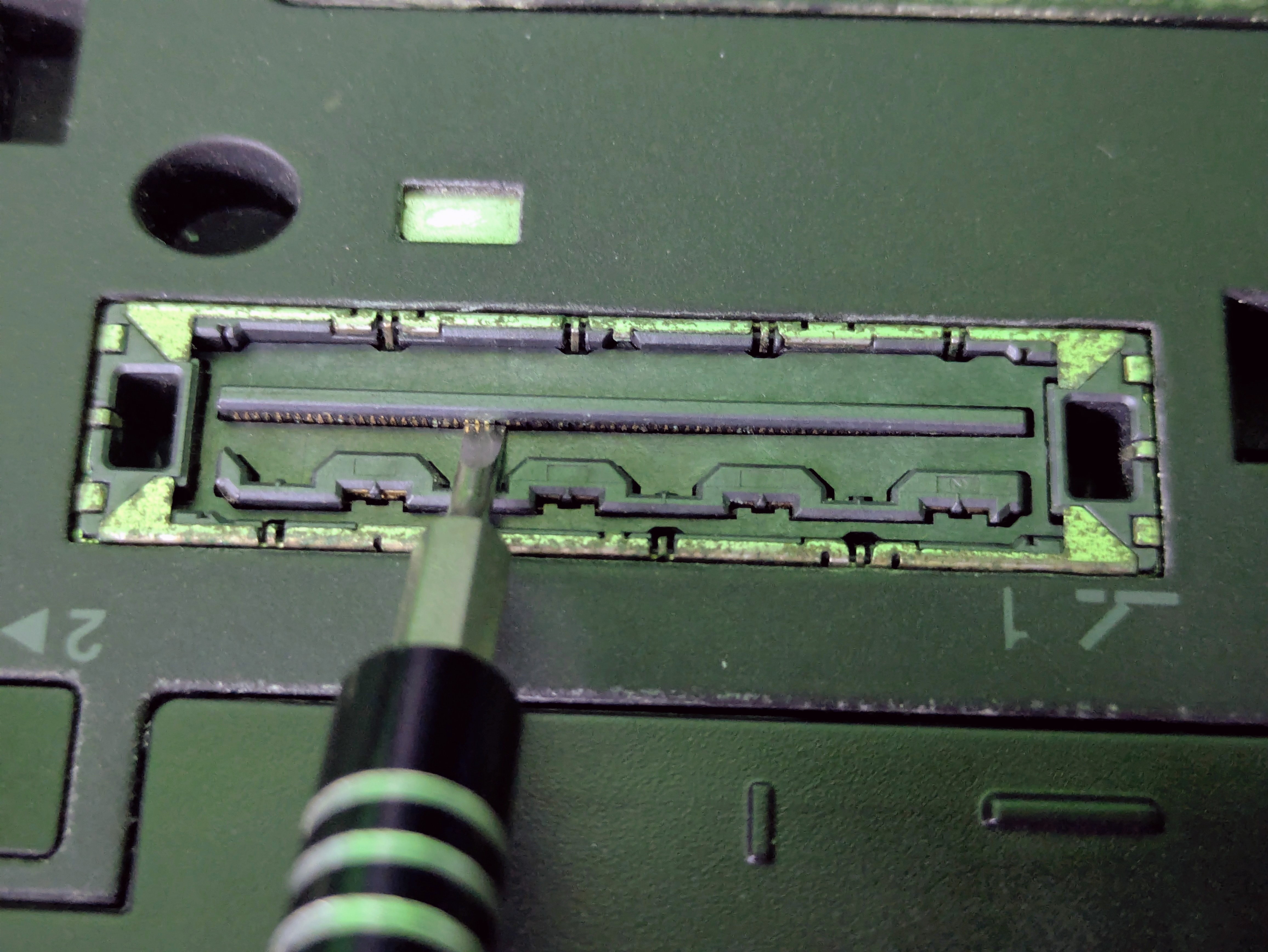 Since I don’t have a docking station, I used the docking port on the bottom of the X220. Using a flat-head screwdriver, insert it into the EXACT position shown in Figure 2.